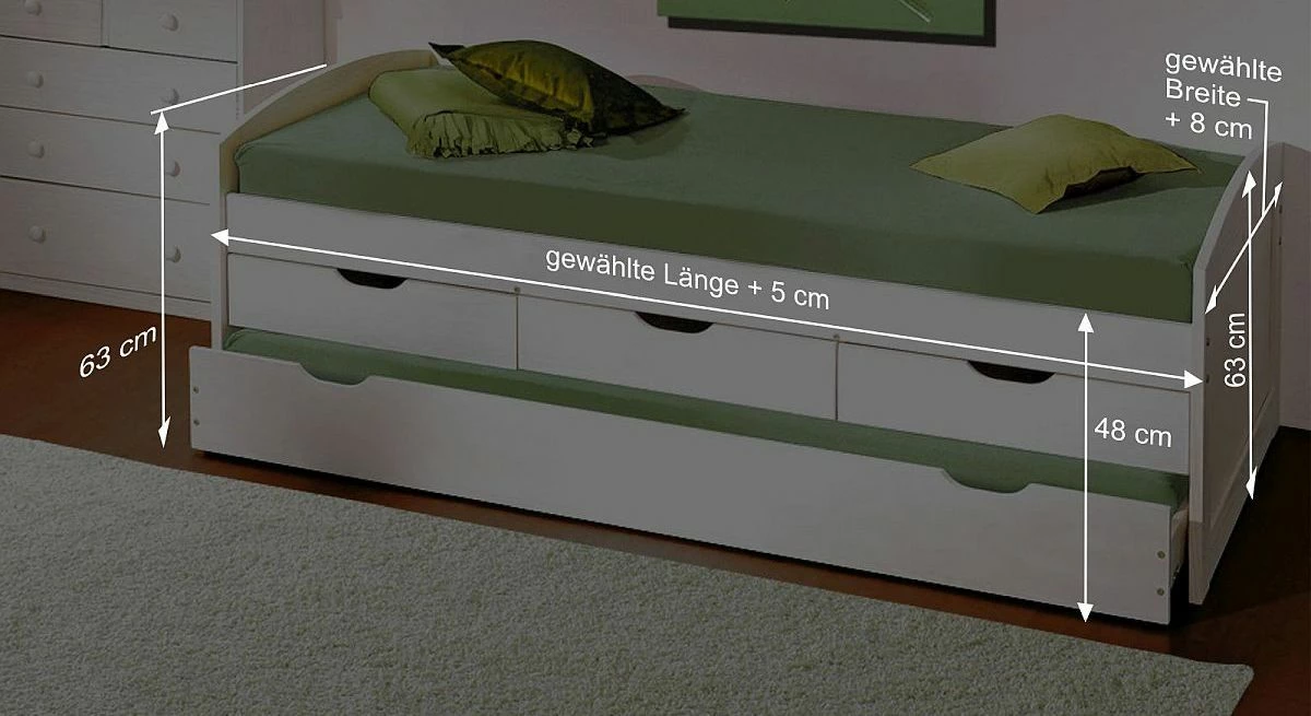 Breite + 8 cm - Kopfteilhöhe: 63 cm