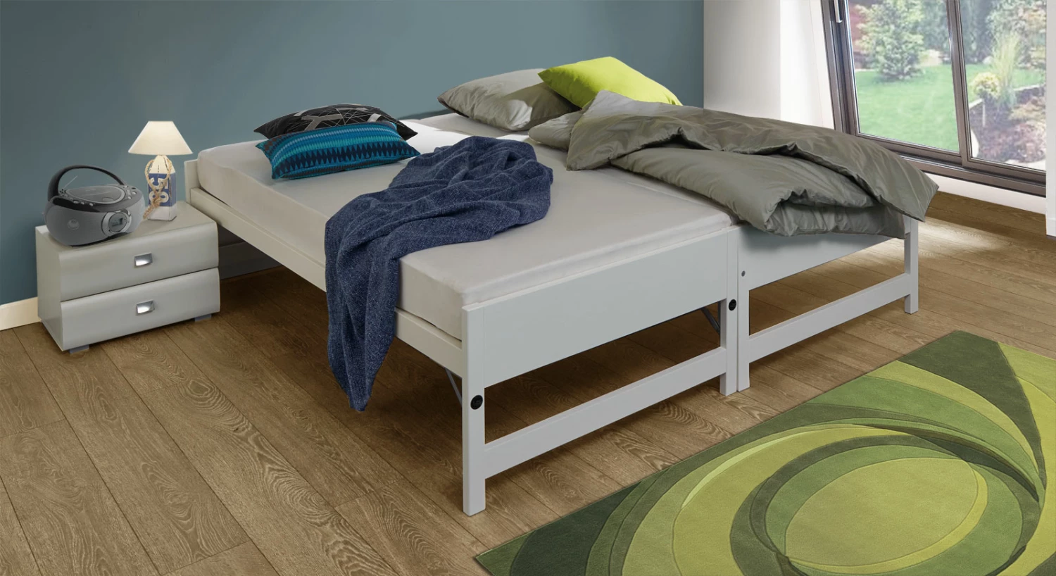 Ab 180 cm Bettbreite gilt die maximale Belastbarkeit pro Bettseite, wenn 2 Lattenroste in halber Bettbreite eingelegt werden.