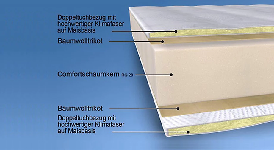 Diese oberste Liegeschicht beeinflusst maßgeblich das generelle Festigkeitsempfinden der Matratze, denn der Körper kommt mit diesem Teil fast unmittelbar in Berührung. Je weicher und/oder profilierter die Matratzenoberfläche ist, desto stärker sinkt der Körper ein.