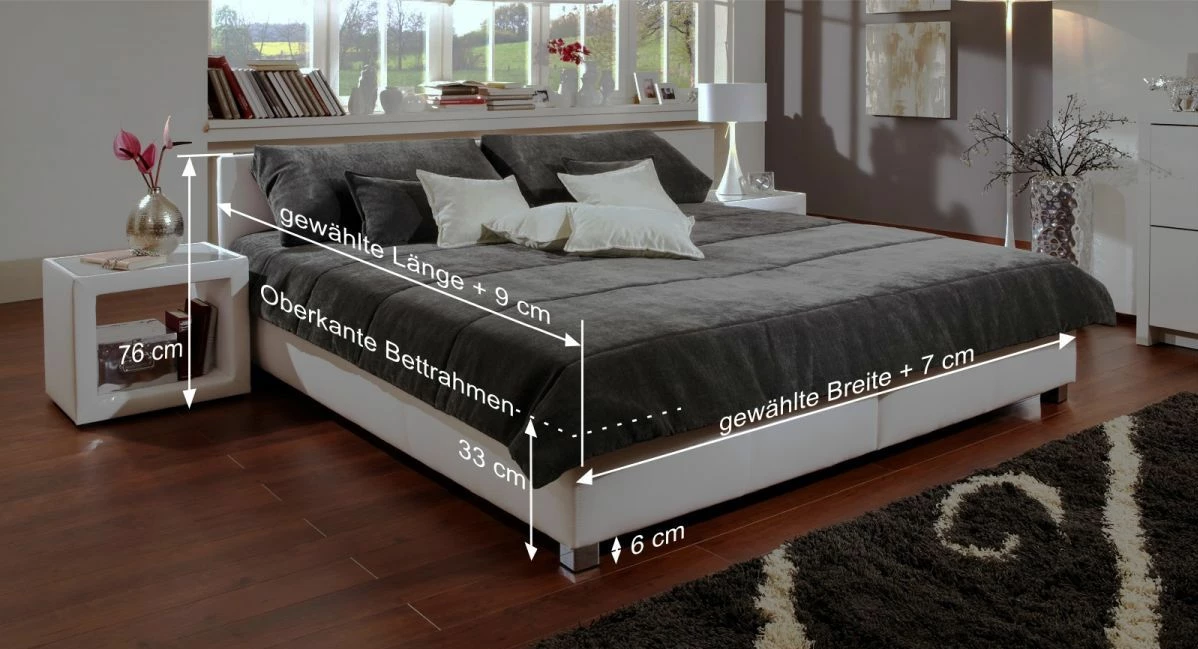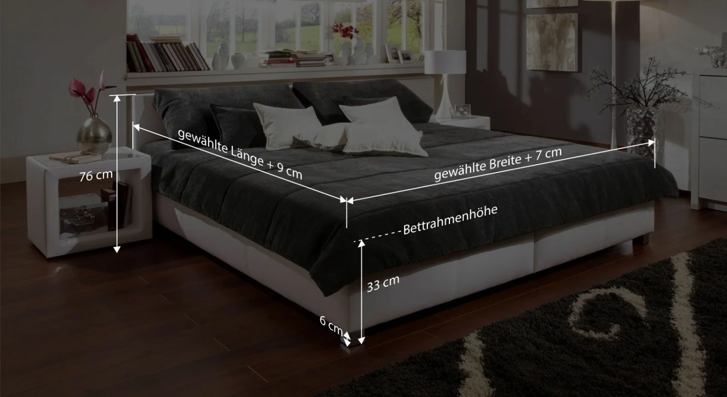 Breite + 7 cm - Kopfteilhöhe: 76 cm