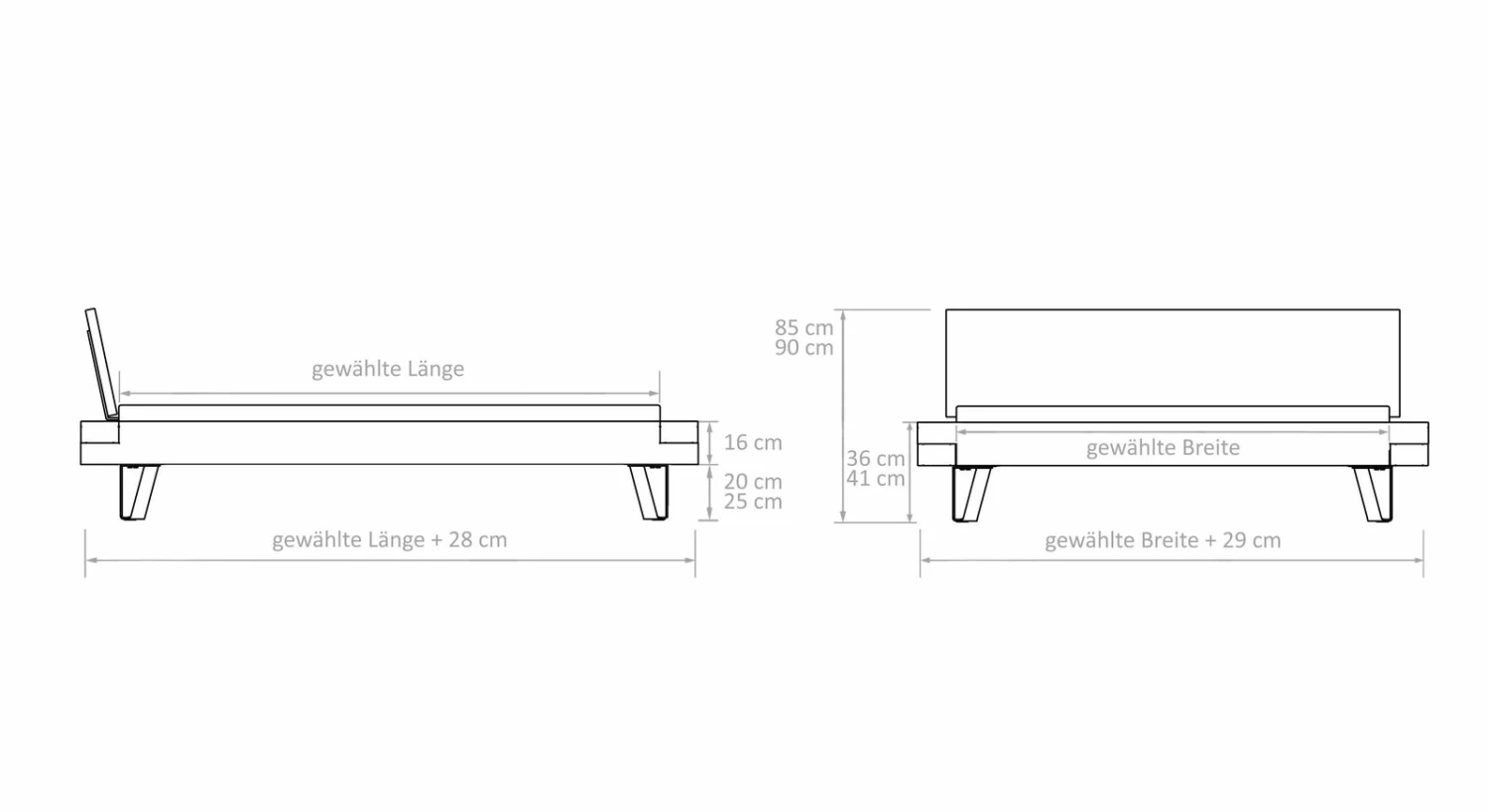 Breite + 29 cm - Kopfteilhöhe: 85 cm, 90 cm