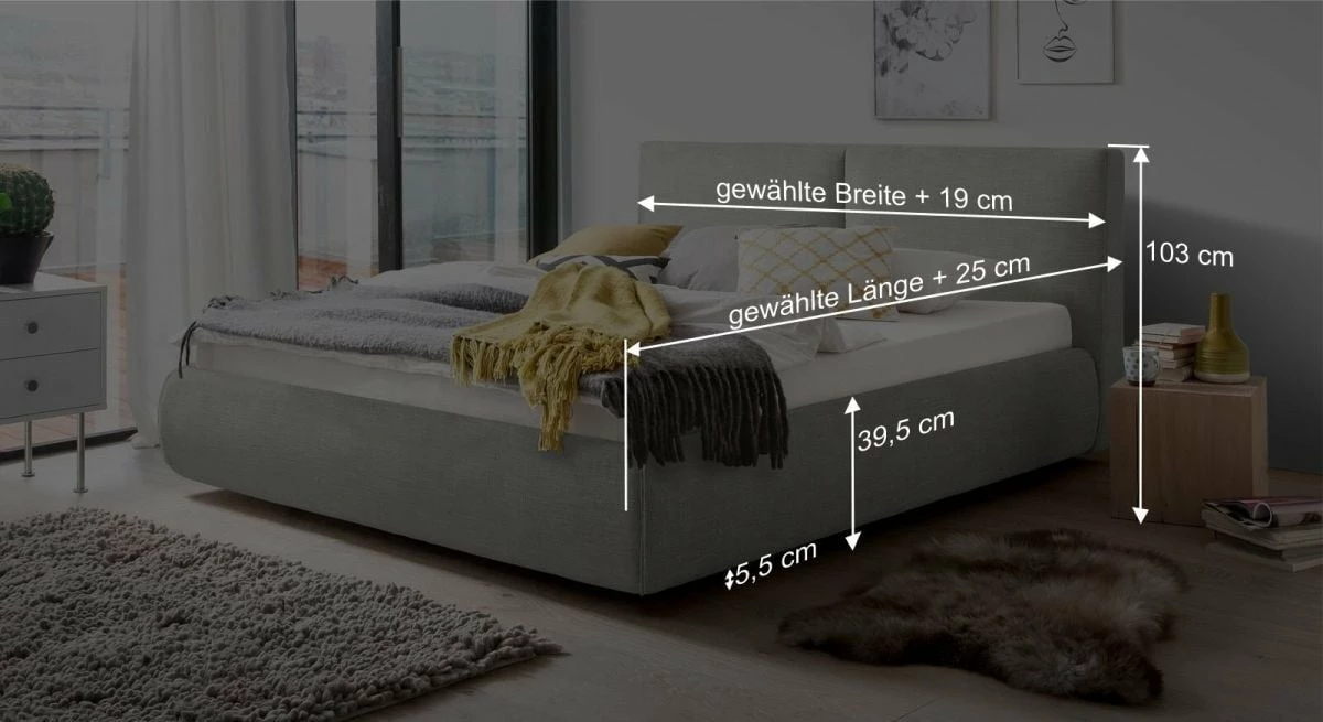 Breite + 19 cm - Kopfteilhöhe: 103 cm