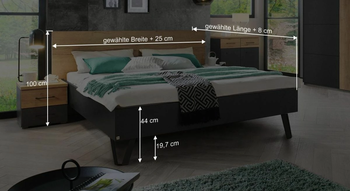 Breite + 25 cm - Kopfteilhöhe: 100 cm