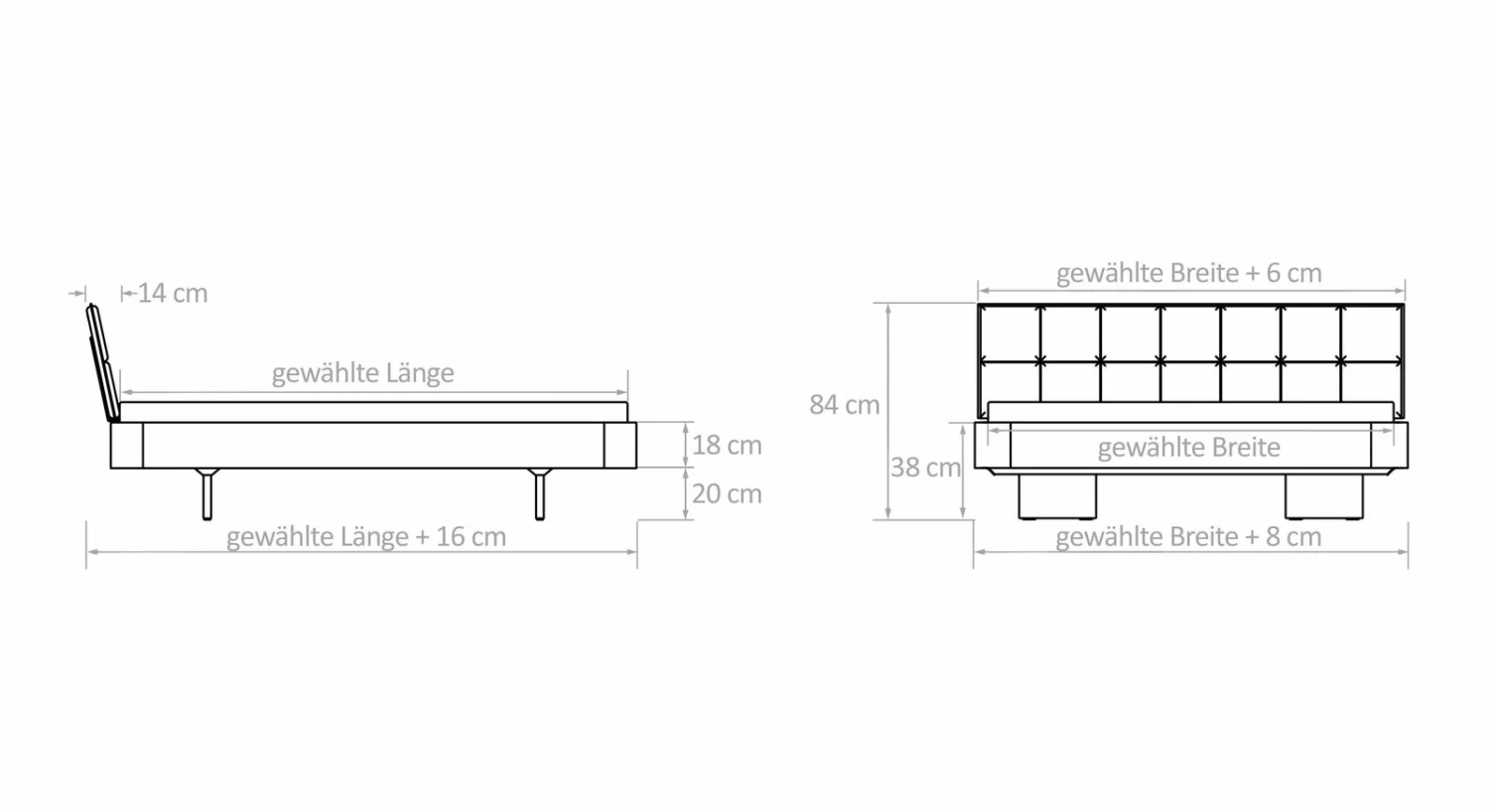 Breite + 8 cm - Kopfteilhöhe: 84 cm