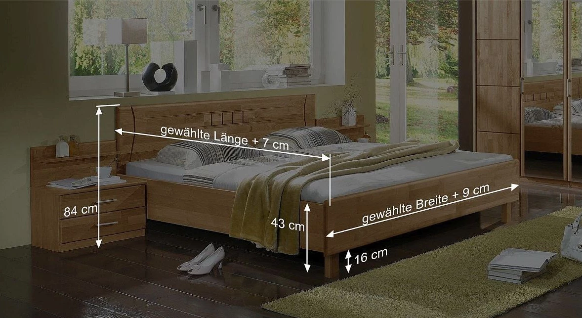 Breite + 9 cm - Kopfteilhöhe: 84 cm