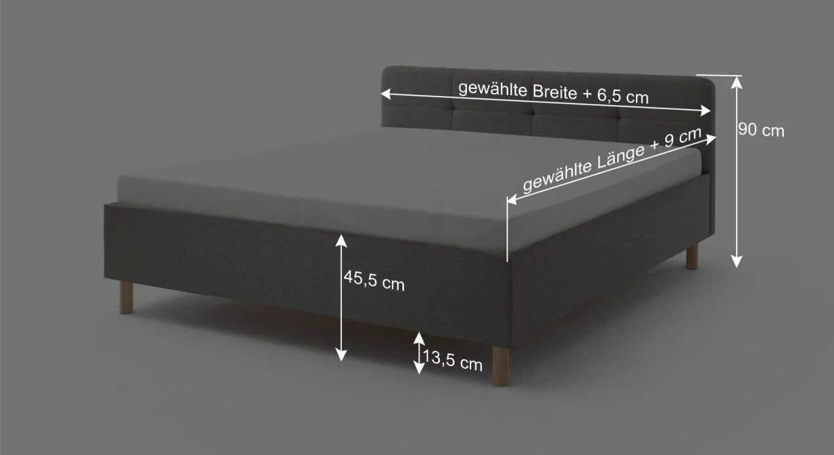 Breite + 6,5 cm - Kopfteilhöhe: 90 cm