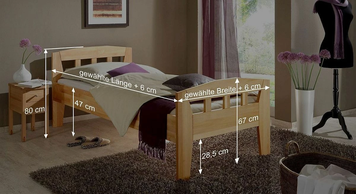 Breite + 6 cm - Kopfteilhöhe: 80 cm