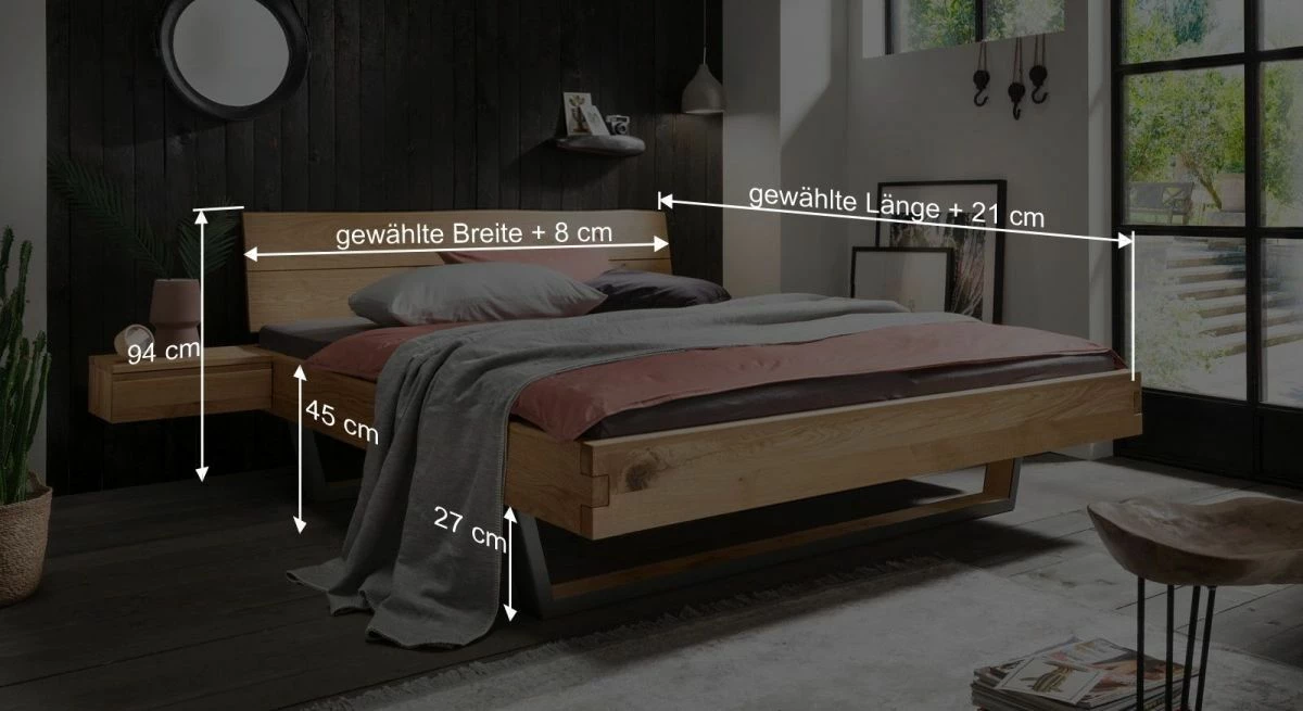 Breite + 8 cm - Kopfteilhöhe: 94 cm