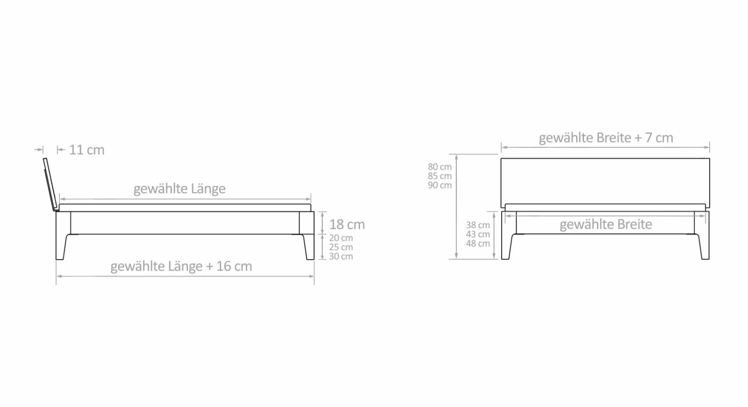 Breite + 7 cm - Kopfteilhöhe: 80 cm, 85 cm, 90 cm