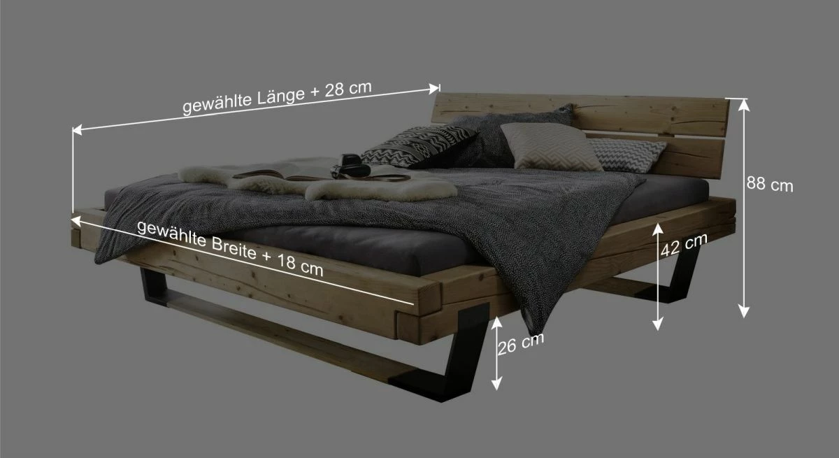 Breite + 18 cm - Kopfteilhöhe: 88 cm
