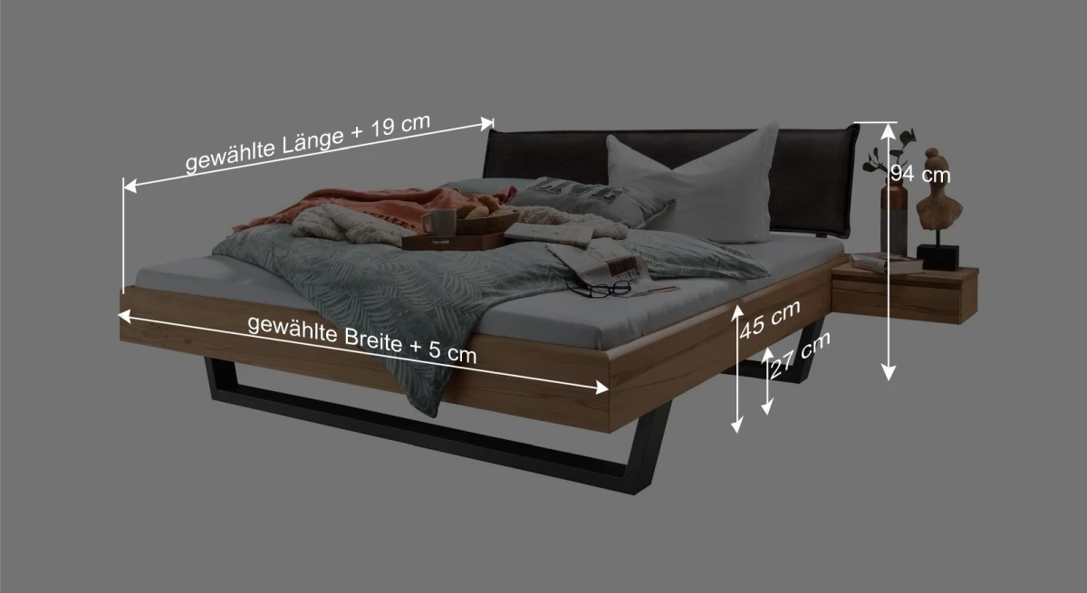 Breite + 5 cm - Kopfteilhöhe: 94 cm
