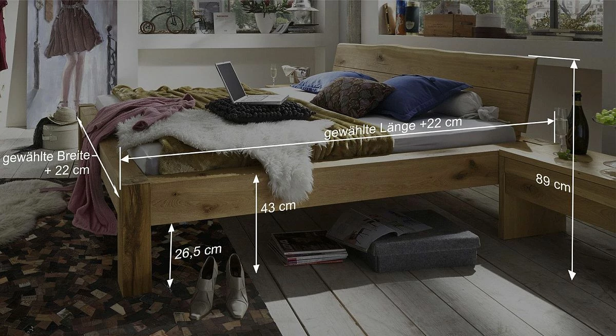 Breite + 22 cm - Kopfteilhöhe: 89 cm