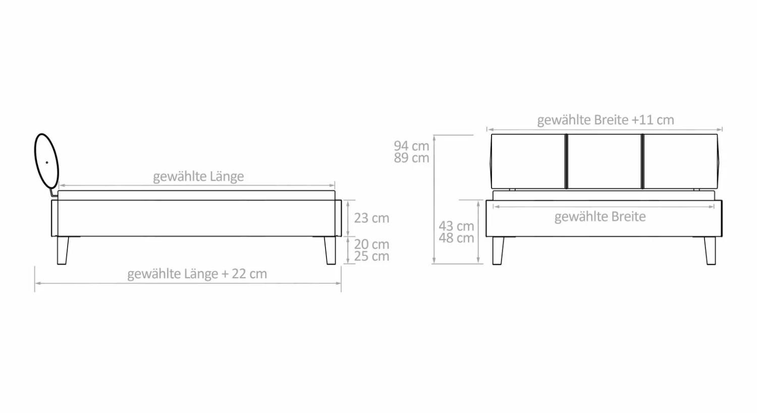 Breite + 11 cm - Kopfteilhöhe: 89 cm, 94 cm
