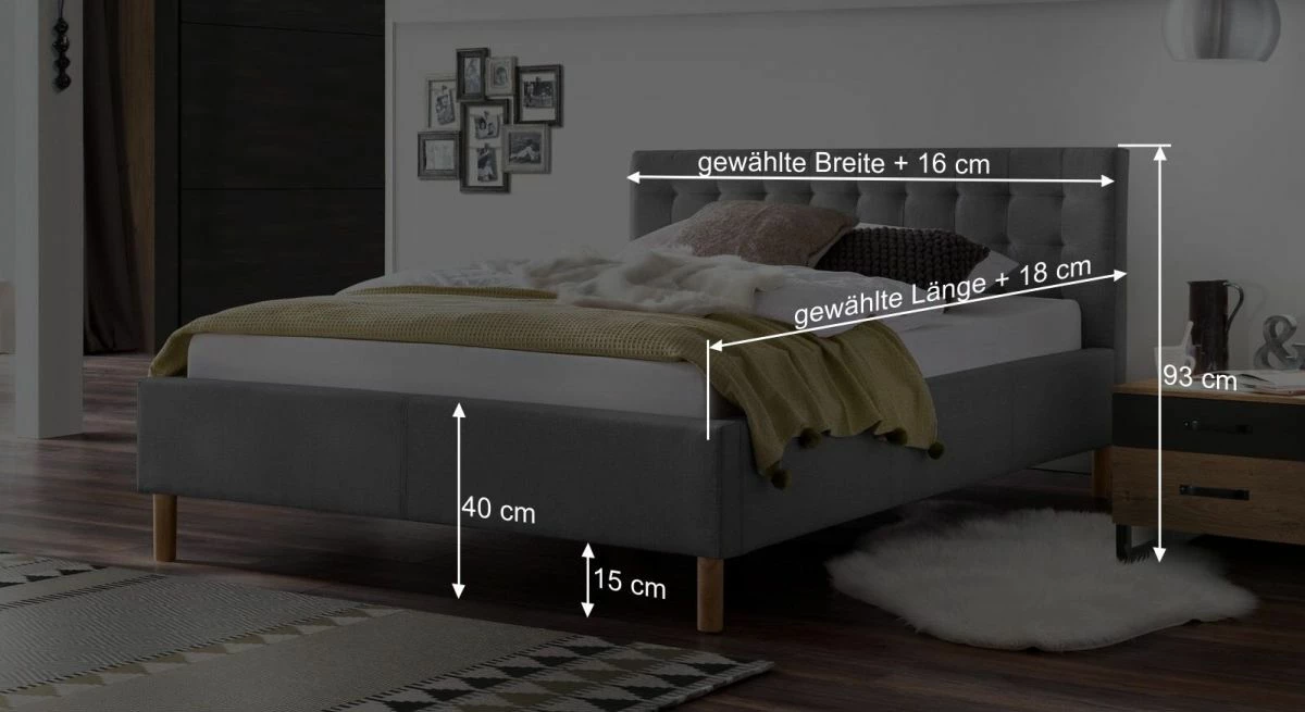Breite + 16 cm - Kopfteilhöhe: 93 cm