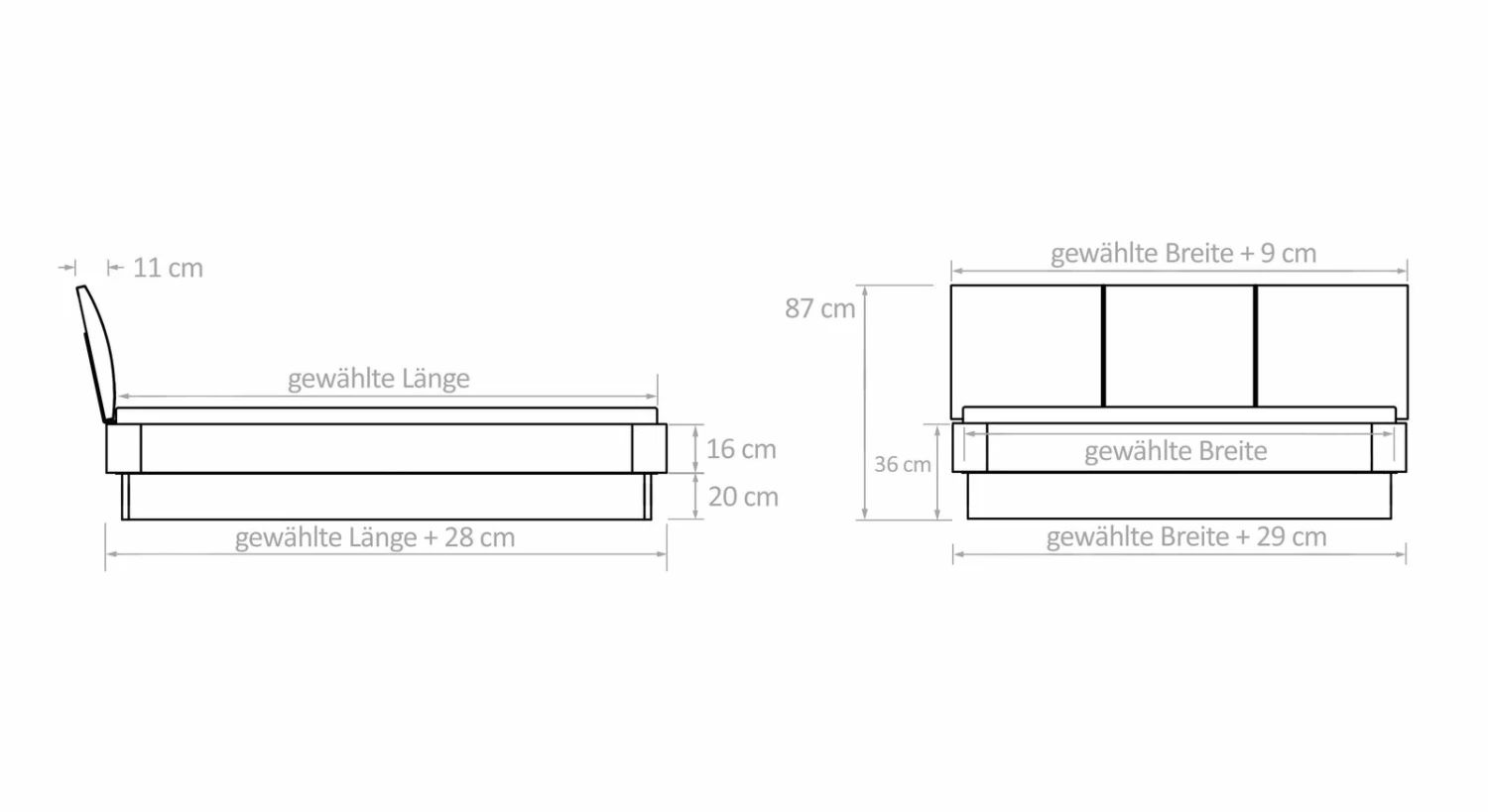 Breite + 29 cm - Kopfteilhöhe: 87 cm, 92 cm