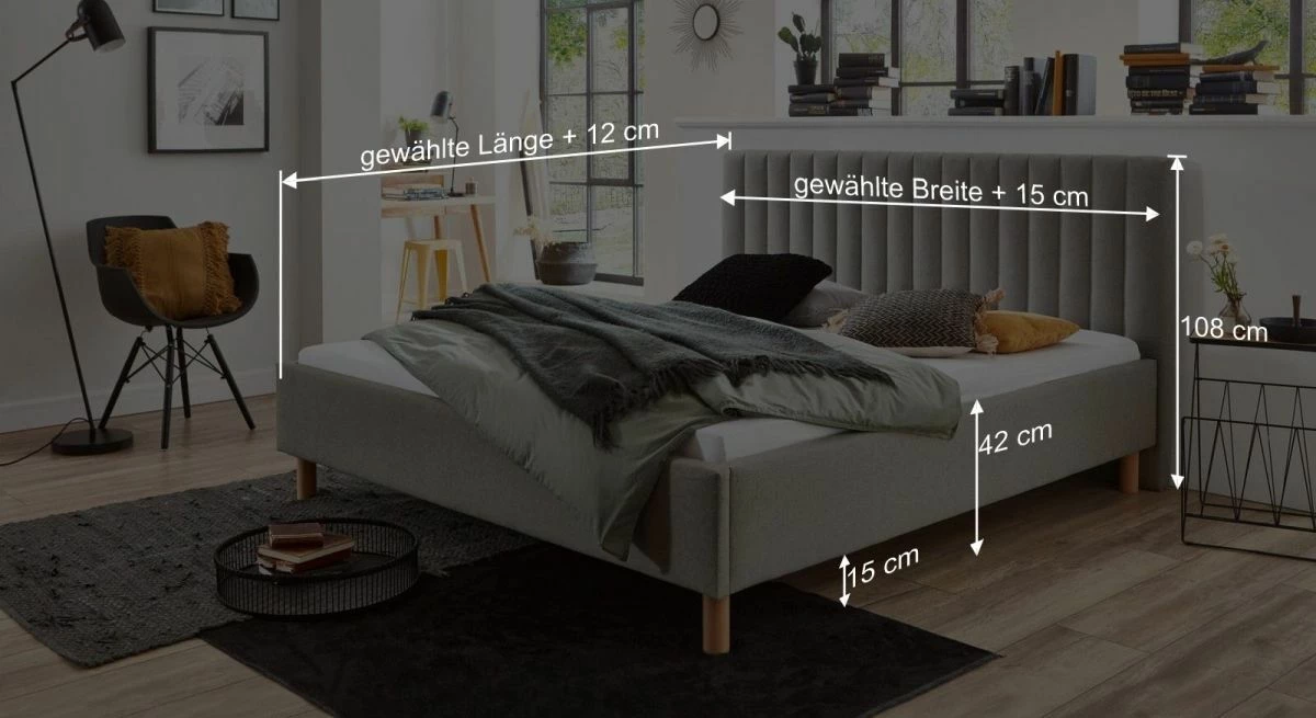 Breite + 15 cm - Kopfteilhöhe: 108 cm