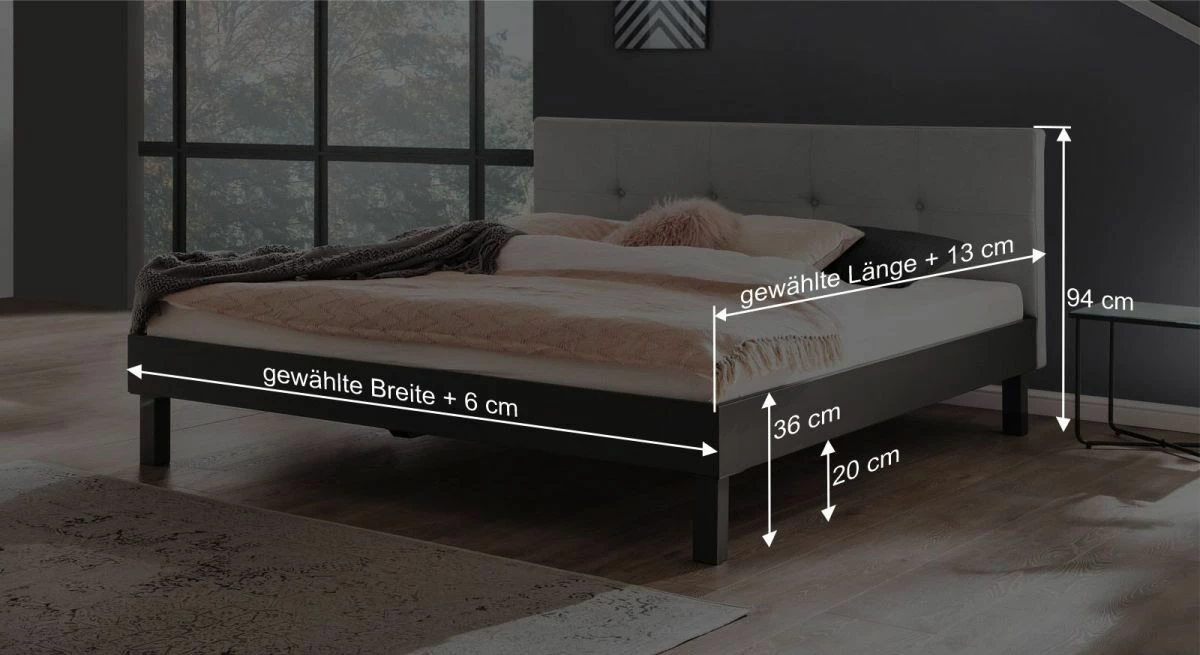 Breite + 6 cm - Kopfteilhöhe: 94 cm