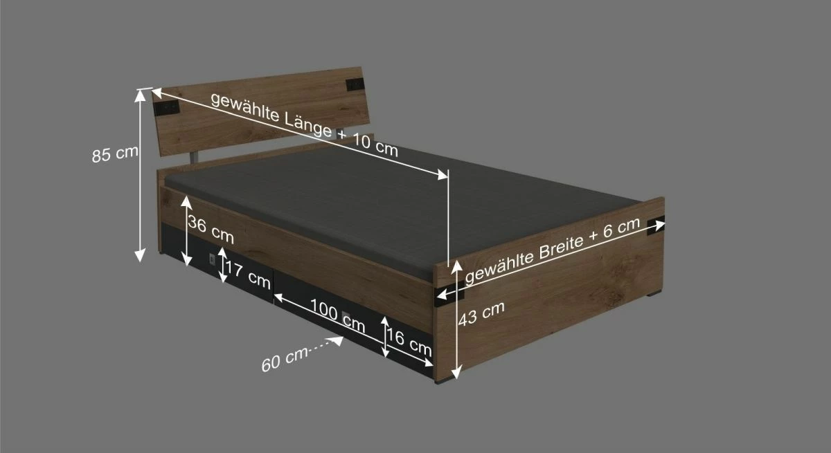 Breite + 6 cm - Kopfteilhöhe: 85 cm
