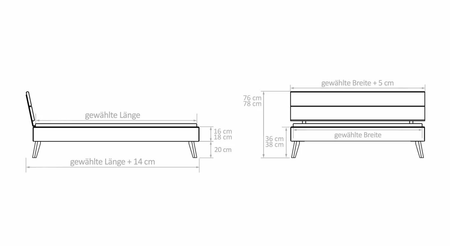 Breite + 5 cm - Kopfteilhöhe: 76 cm, 78 cm