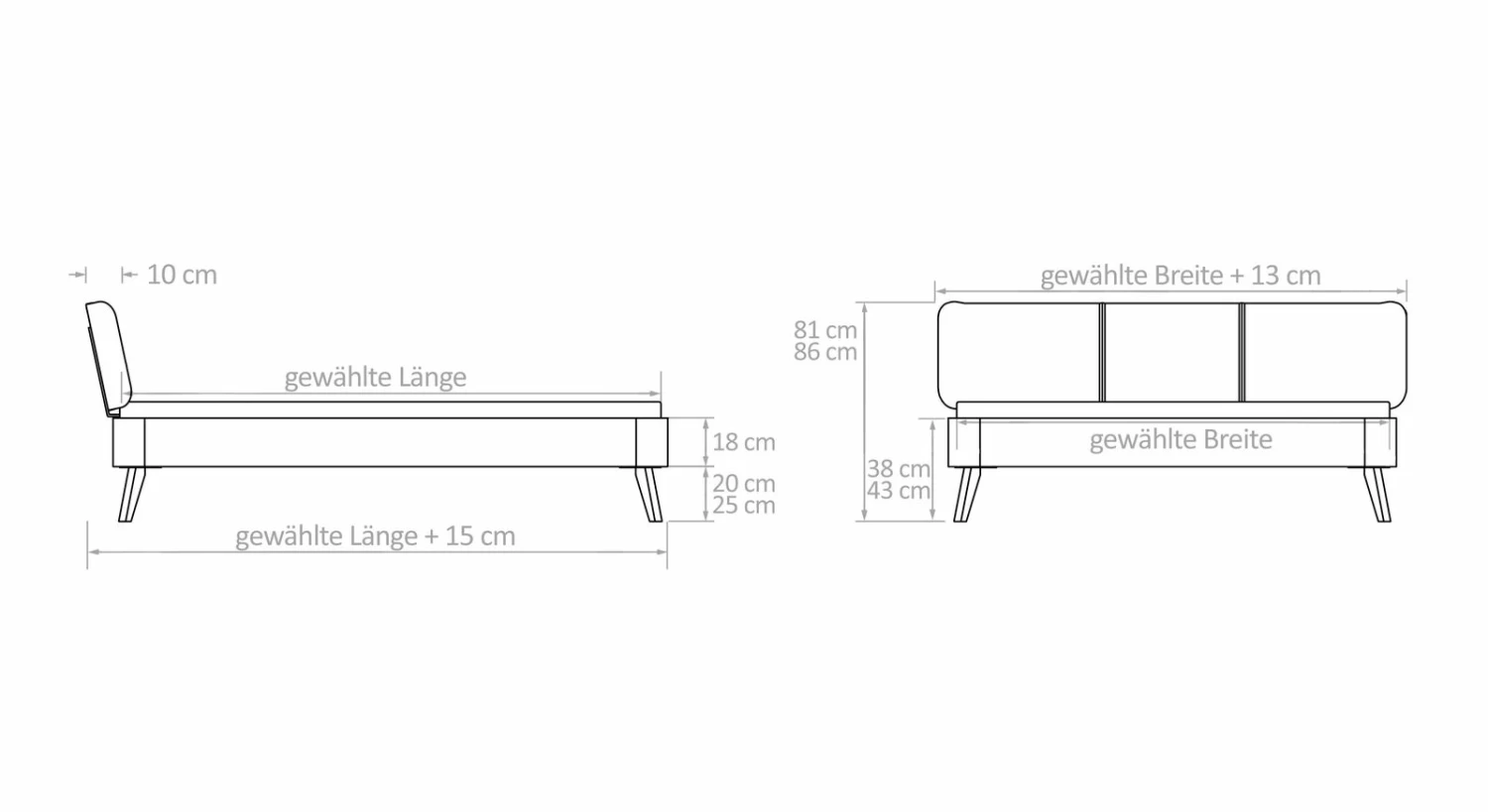 Breite + 13 cm - Kopfteilhöhe: 81 cm