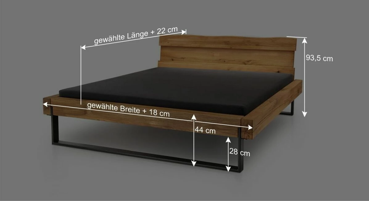 Breite + 18 cm - Kopfteilhöhe: 93,5 cm