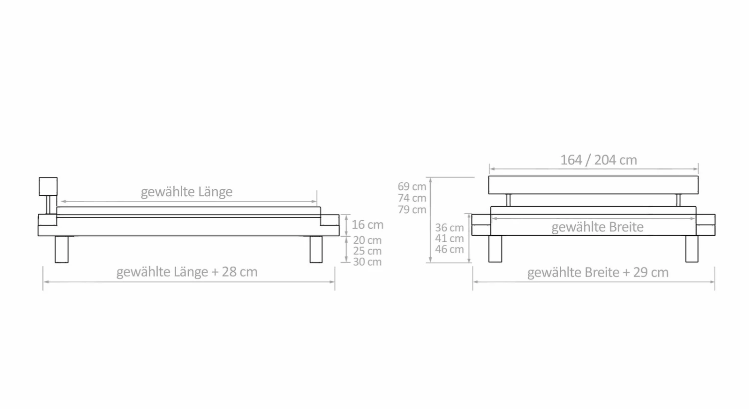 Breite + 29 cm - Kopfteilhöhe: 69 cm, 74 cm, 79 cm