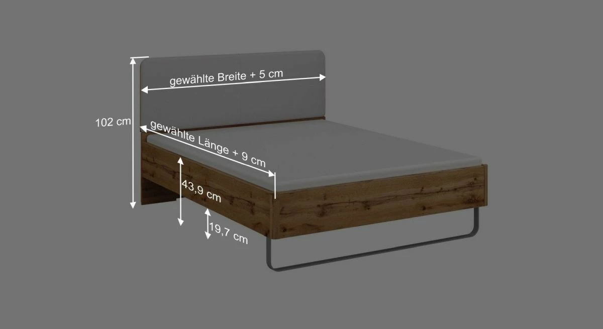 Breite + 5 cm - Kopfteilhöhe: 102 cm