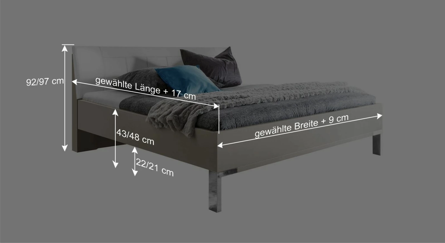 Breite + 9 cm - Kopfteilhöhe: 92 cm, 97 cm