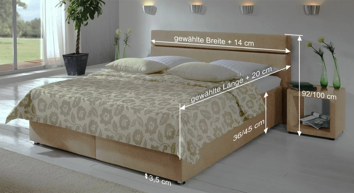 Breite + 14 cm - Kopfteilhöhe: 92 cm, 100 cm