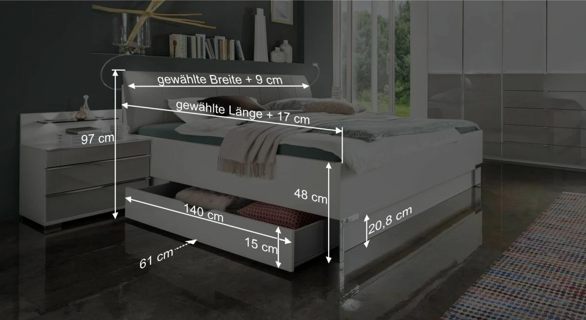 Breite + 9 cm - Kopfteilhöhe: 97 cm
