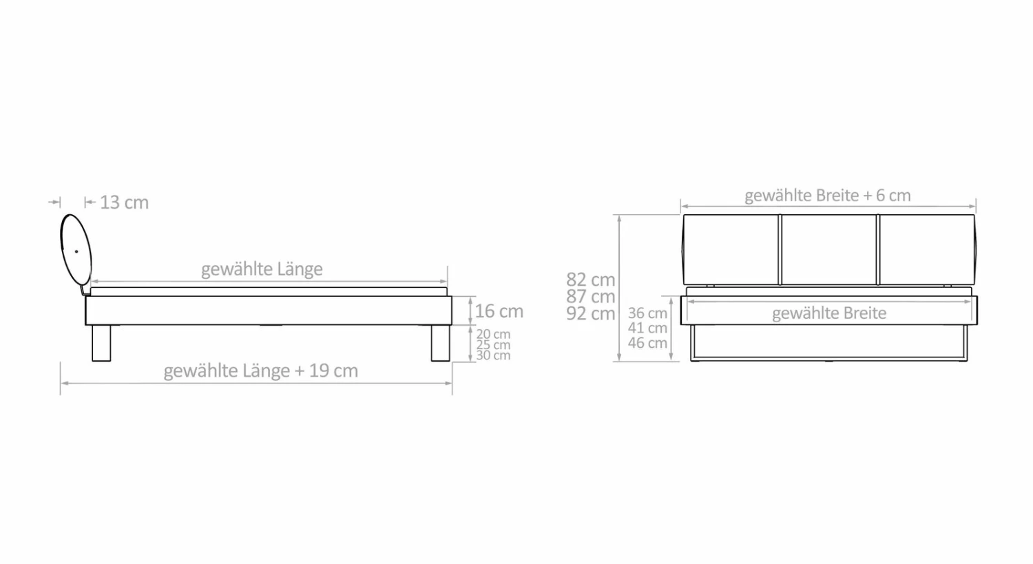 Breite + 6 cm - Kopfteilhöhe: 82 cm, 87 cm, 92 cm