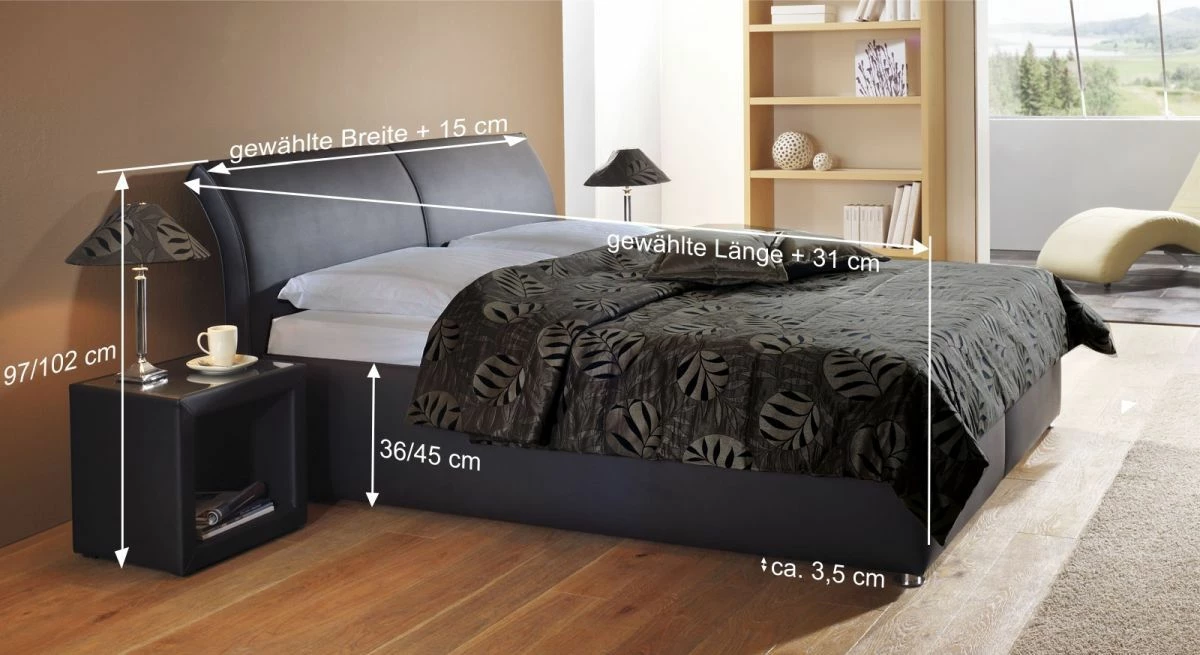 Breite + 15 cm - Kopfteilhöhe: 97 cm, 102 cm