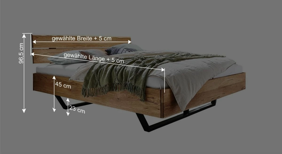 Breite + 5 cm - Kopfteilhöhe: 96,5 cm