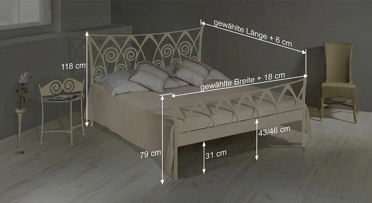 Breite + 18 cm - Kopfteilhöhe: 118 cm