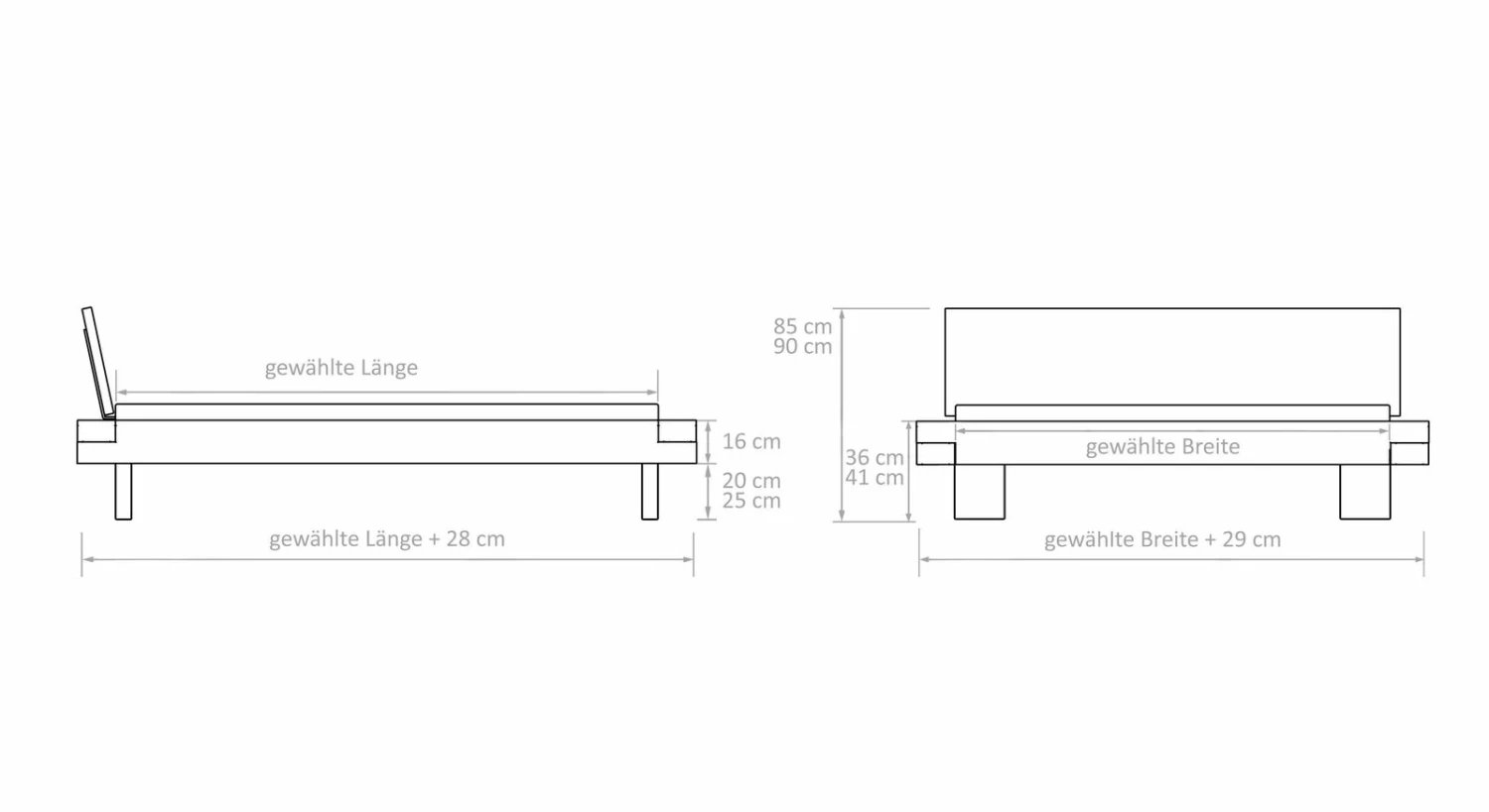 Breite + 29 cm - Kopfteilhöhe: 85 cm, 90 cm