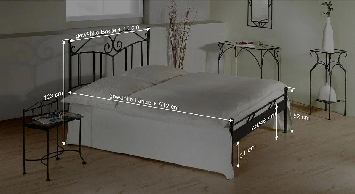 Breite + 10 cm - Kopfteilhöhe: 123 cm