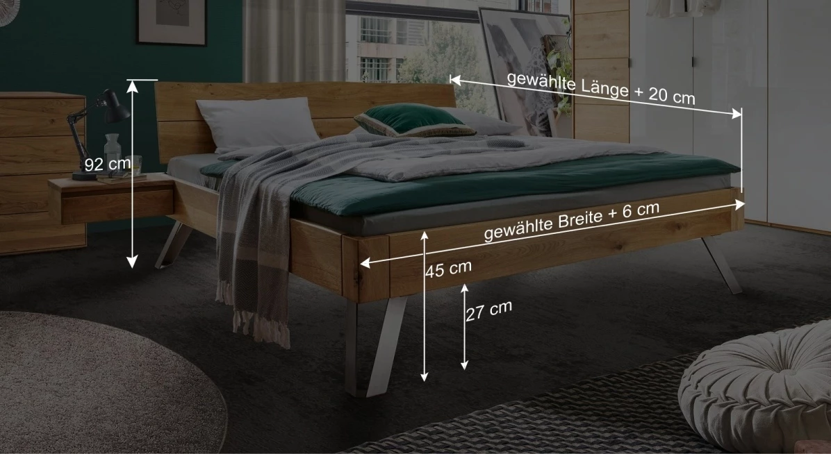 Breite + 6 cm - Bettrahmenhöhe: 45 cm