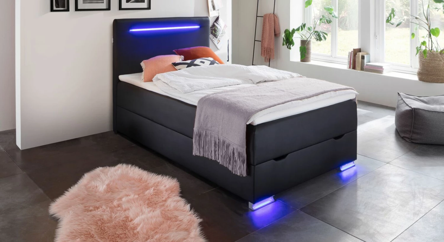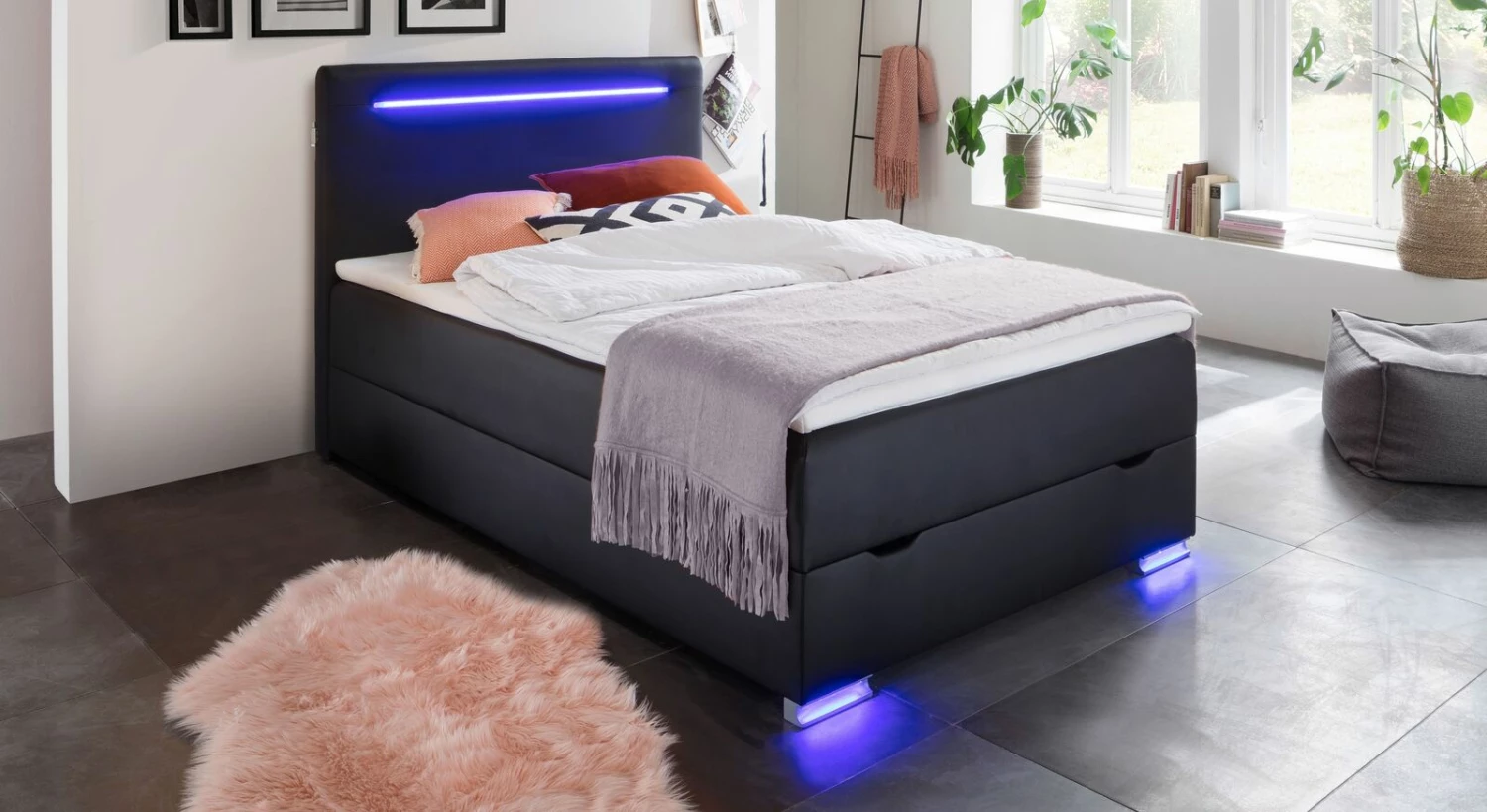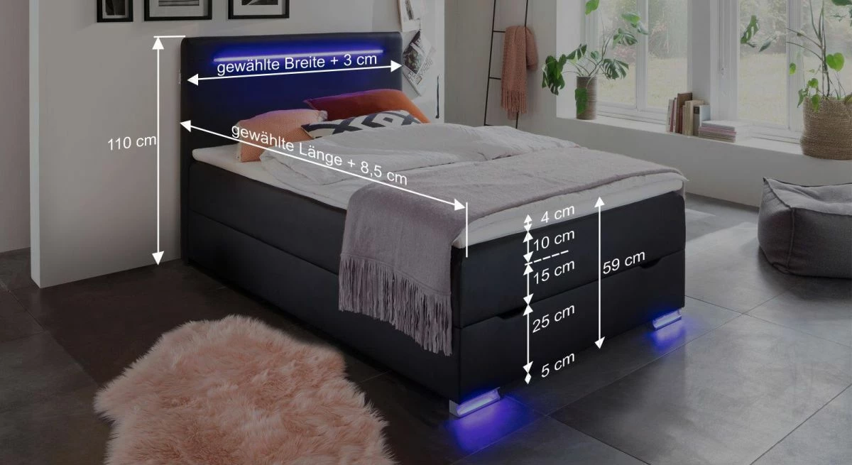 - LED-Beleuchtung an den Füßen und im Kopfteil
