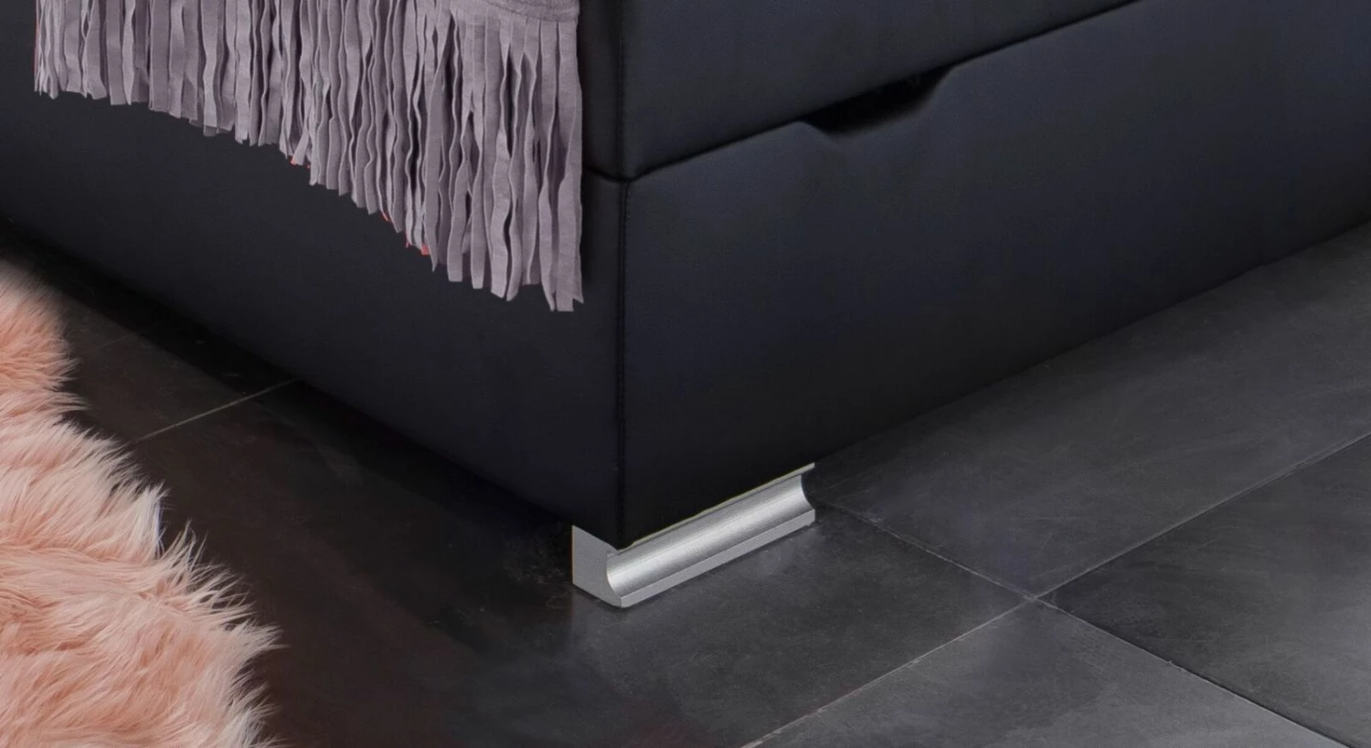 Den Abschluss bilden niedrige Kunststofffüße in Metalloptik, die das Bettkasten-Boxspringbett „Andrik“ vom Boden anheben und der Liegefläche eine leicht schwebende Optik verleihen. Wem ein helles Bett besser gefällt, erhält das identische Modell mit weißem Kunstlederbezug als Bettkasten-Boxspringbett „Iniko“.