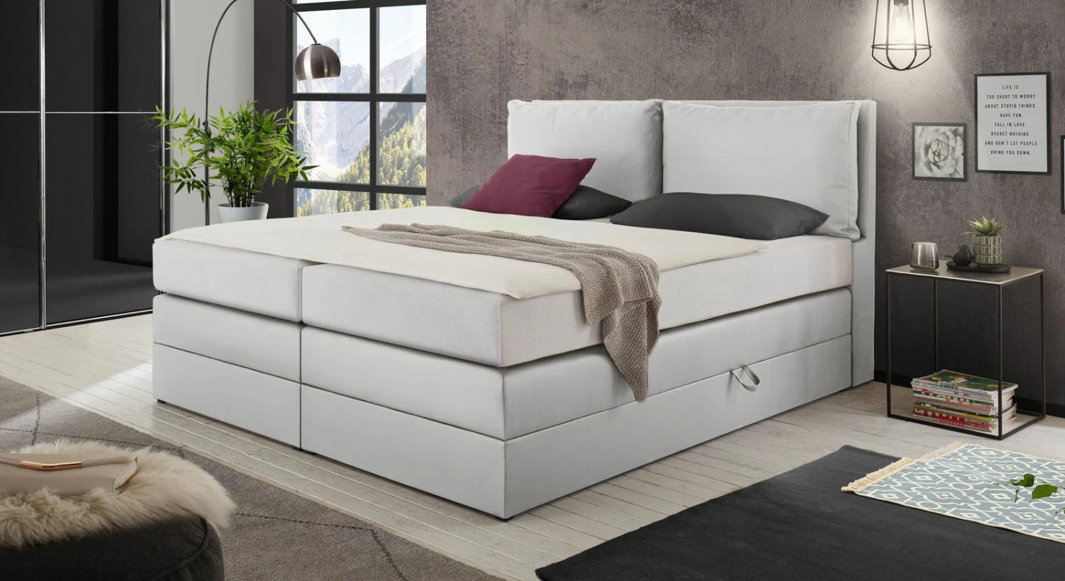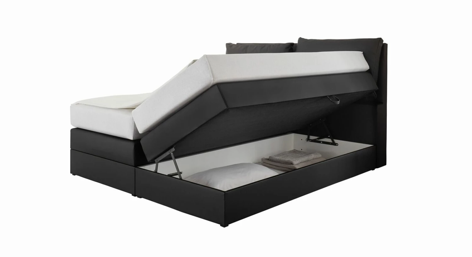 Komfortables Bettkasten-Boxspringbett „Elenor“ im schlichten Design mit praktischem Stauraum