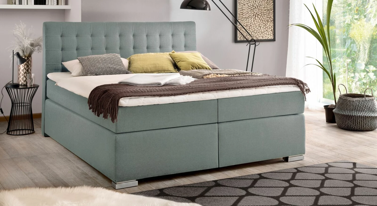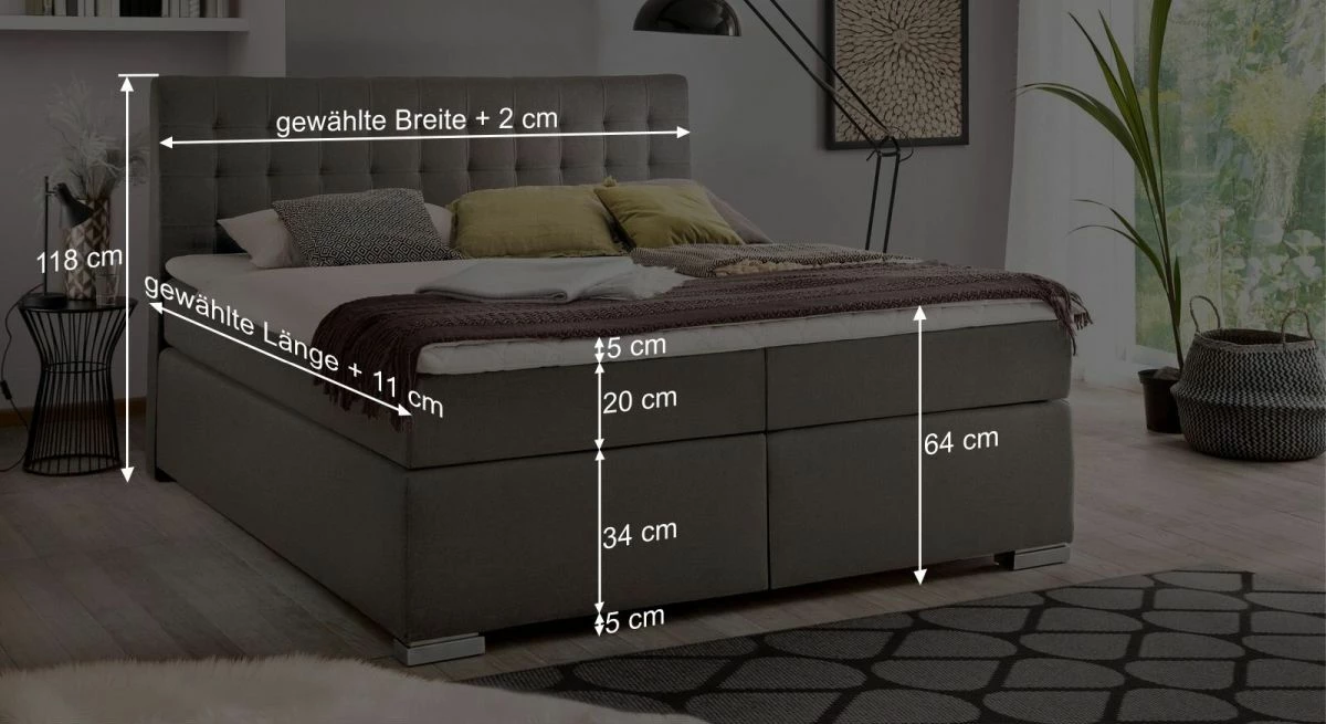 Unser Tipp: Das identische Bettmodell ist auch ohne Bettkasten als Boxspringbett „Matai“ erhältlich. Hier ist die Liegehöhe etwa sieben Zentimeter geringer.