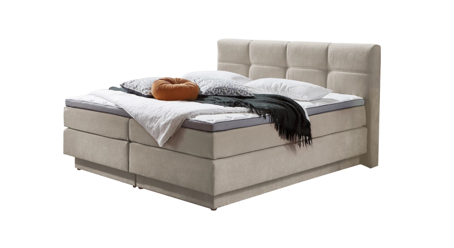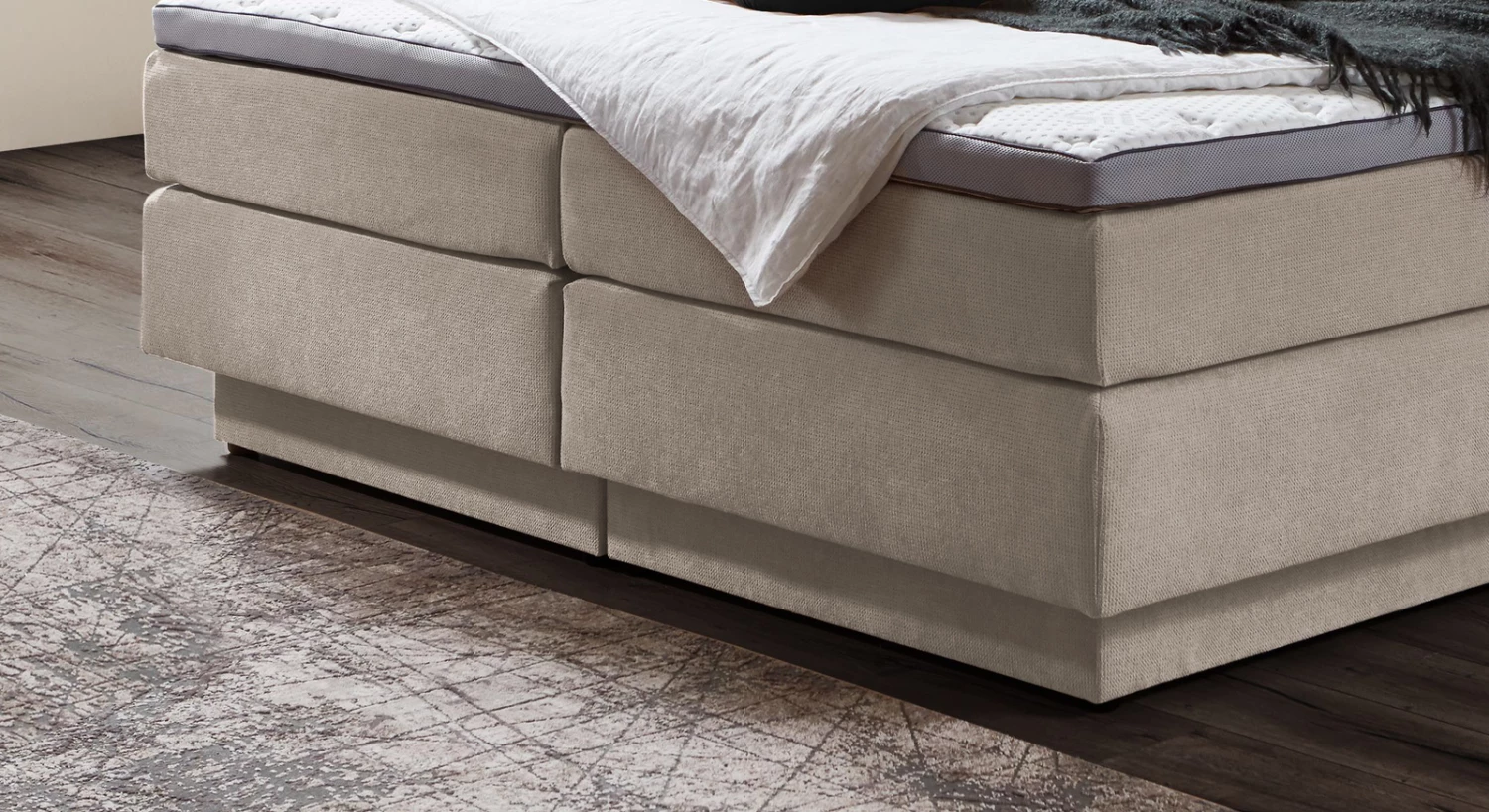 - Boxen, Matratze und Kopfteil bezogen mit weichem Webstoff