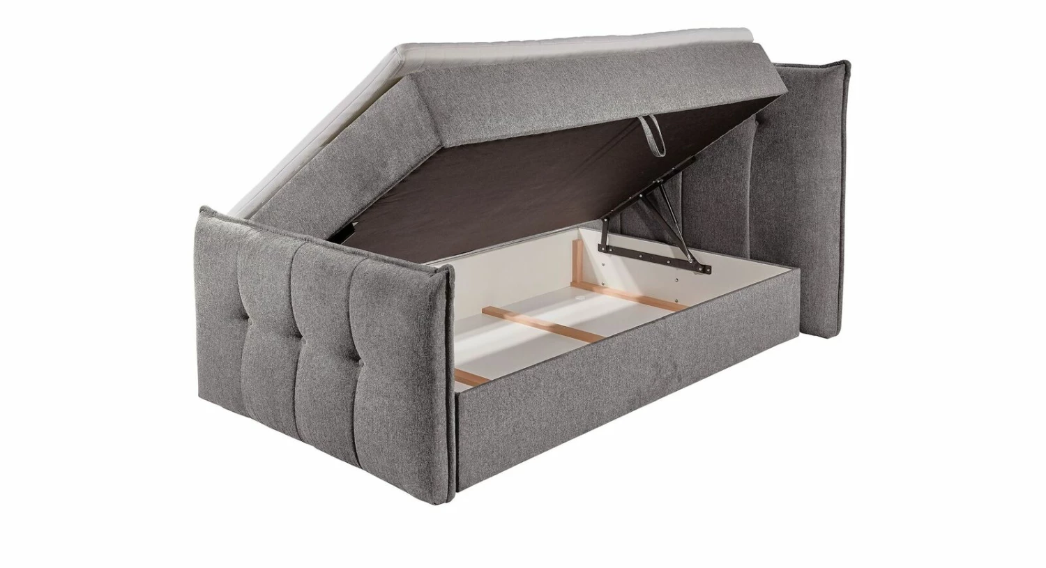 Bei der mitgelieferten Matratze handelt es sich um eine überaus flexible Tonnen-Taschenfederkern-Matratze mit sieben Liegezonen. Sie ist für alle Schlafpositionen geeignet und kann mit bis zu 120 kg Körpergewicht belastet werden. Sie fragen sich, wie die Matratze auf dem Bett hält, wenn Sie den Bettkasten benutzen? Keine Sorge: Die Matratze ist fest am Deckel des Bettkastens fixiert und kann daher nicht verrutschen.