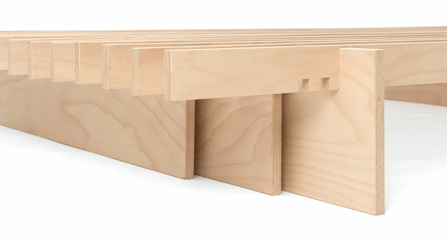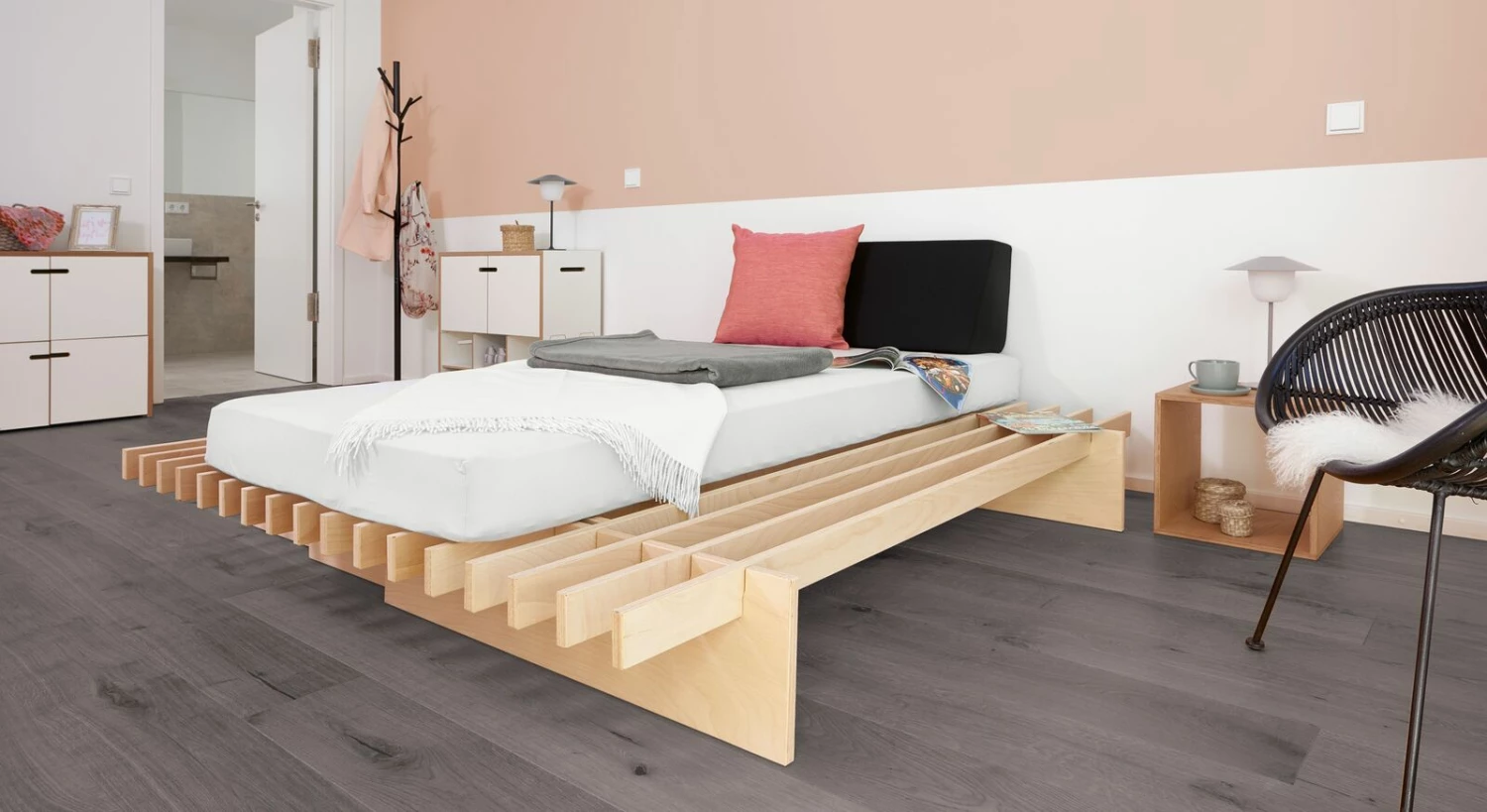 Das Holz wird sorgfältig geschliffen und entgratet, sodass eine glatte Oberfläche mit sanften Kanten entsteht, die keine weitere Behandlung benötigt. Das Holz behält seine natürliche Struktur, kann frei atmen und so zu einem ausgeglichenen Raumklima beitragen.