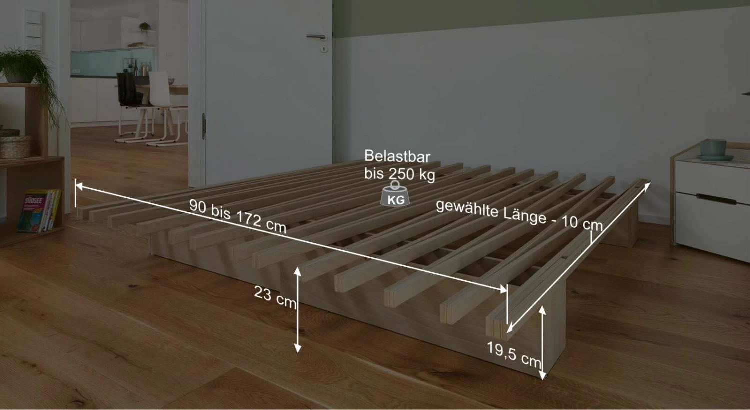 Breite variabel: 90 – 172 cm - Bettrahmenhöhe: 23 cm