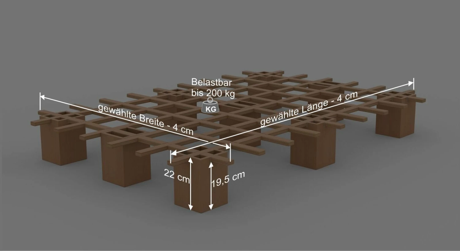 Breite – 4 cm - Bettrahmenhöhe: 22 cm