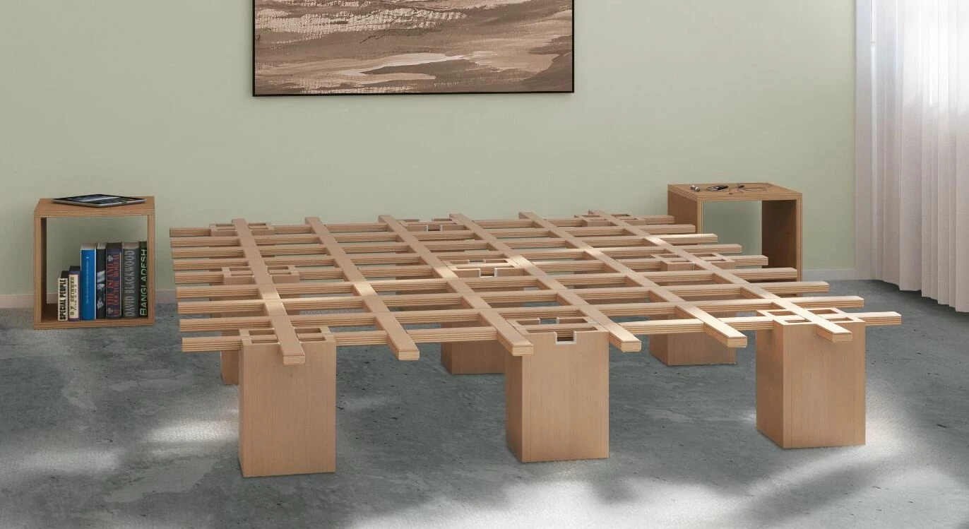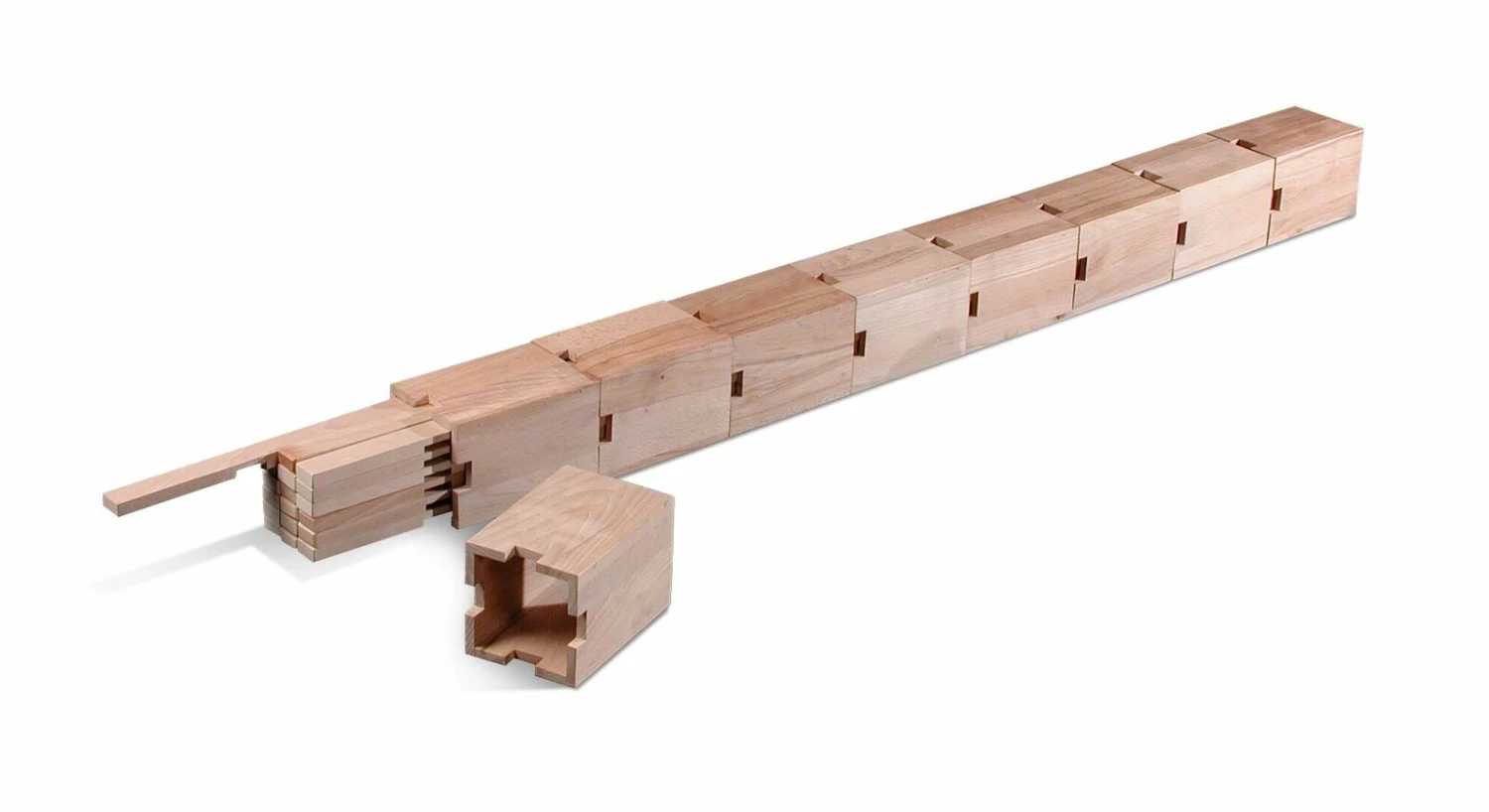 Das Holz wird sorgfältig geschliffen und entgratet, sodass eine glatte Oberfläche mit sanften Kanten entsteht, die keine weitere Behandlung benötigt. Das Holz behält seine natürliche Struktur, kann frei atmen und so zu einem ausgeglichenen Raumklima beitragen.