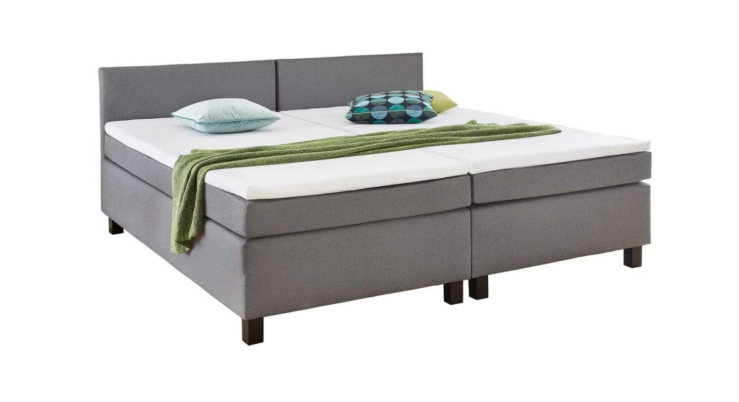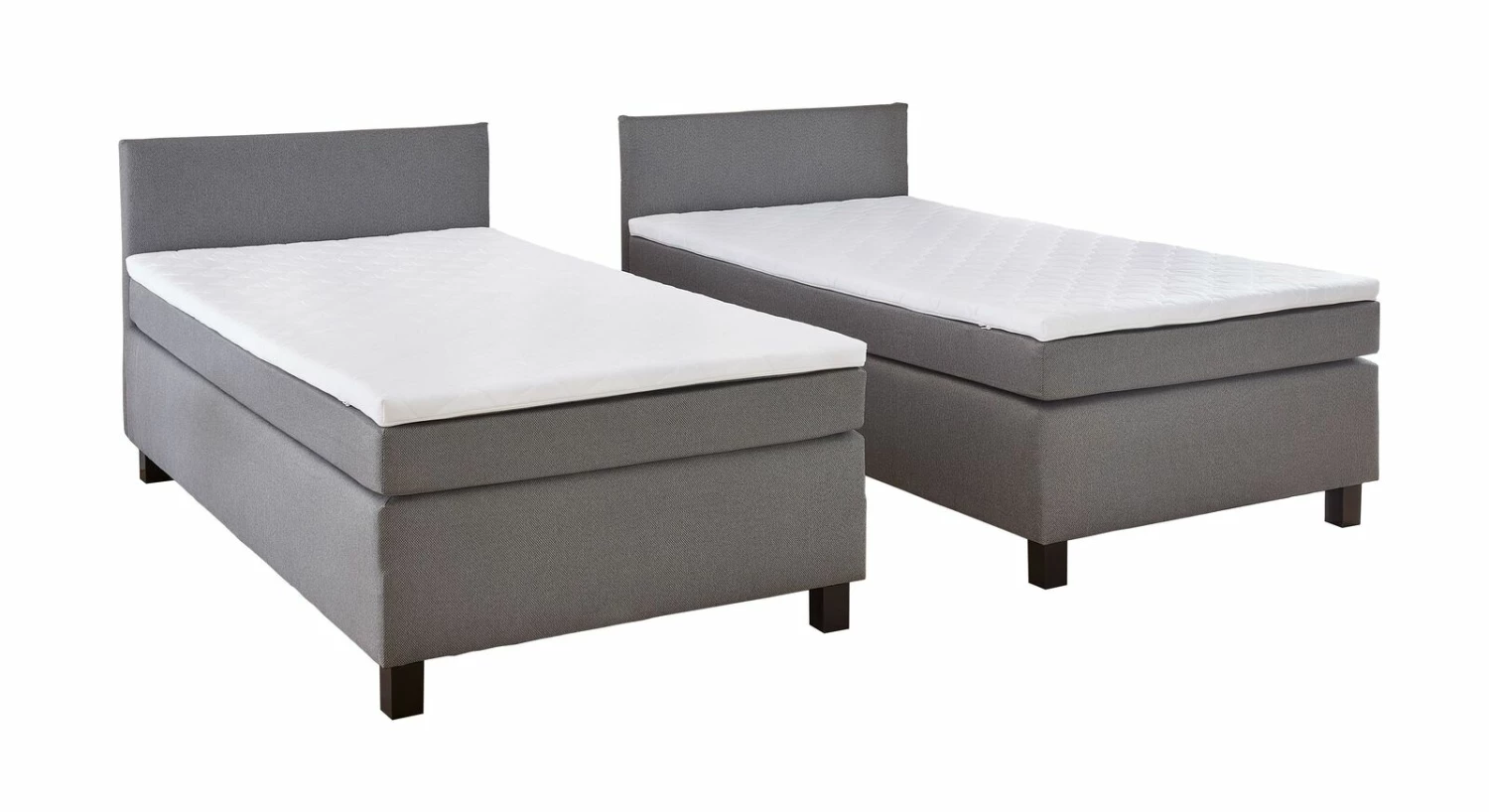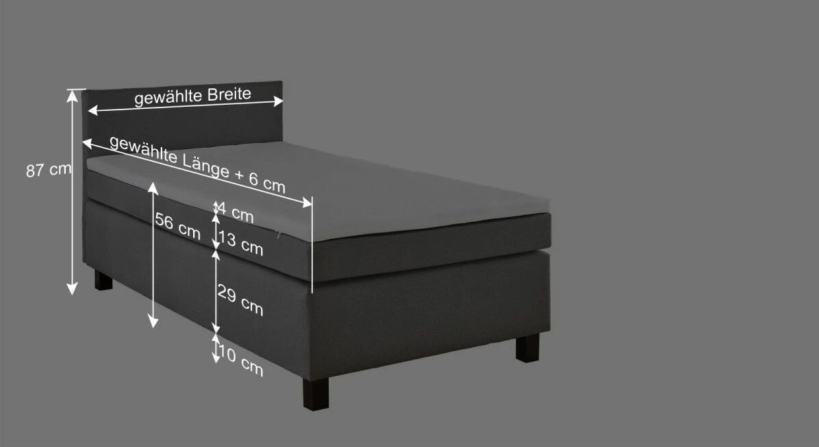 Das schlichte Boxspring-Einzelbett ist in einer Breite von 100 cm lieferbar. Wenn Sie auf der Suche sind nach einem breiteren Boxspringbett mit demselben Design, dann werfen Sie einen Blick auf das Boxspringbett „Lucan“. Dieses Modell ist in verschiedenen Breiten bis zu 180 cm bestellbar. Allerdings haben Sie auch die Möglichkeit, zwei Boxspring-Einzelbetten nebeneinander zu stellen und so eine komfortabel Bettgröße von 200 x 200 cm zu genießen.
