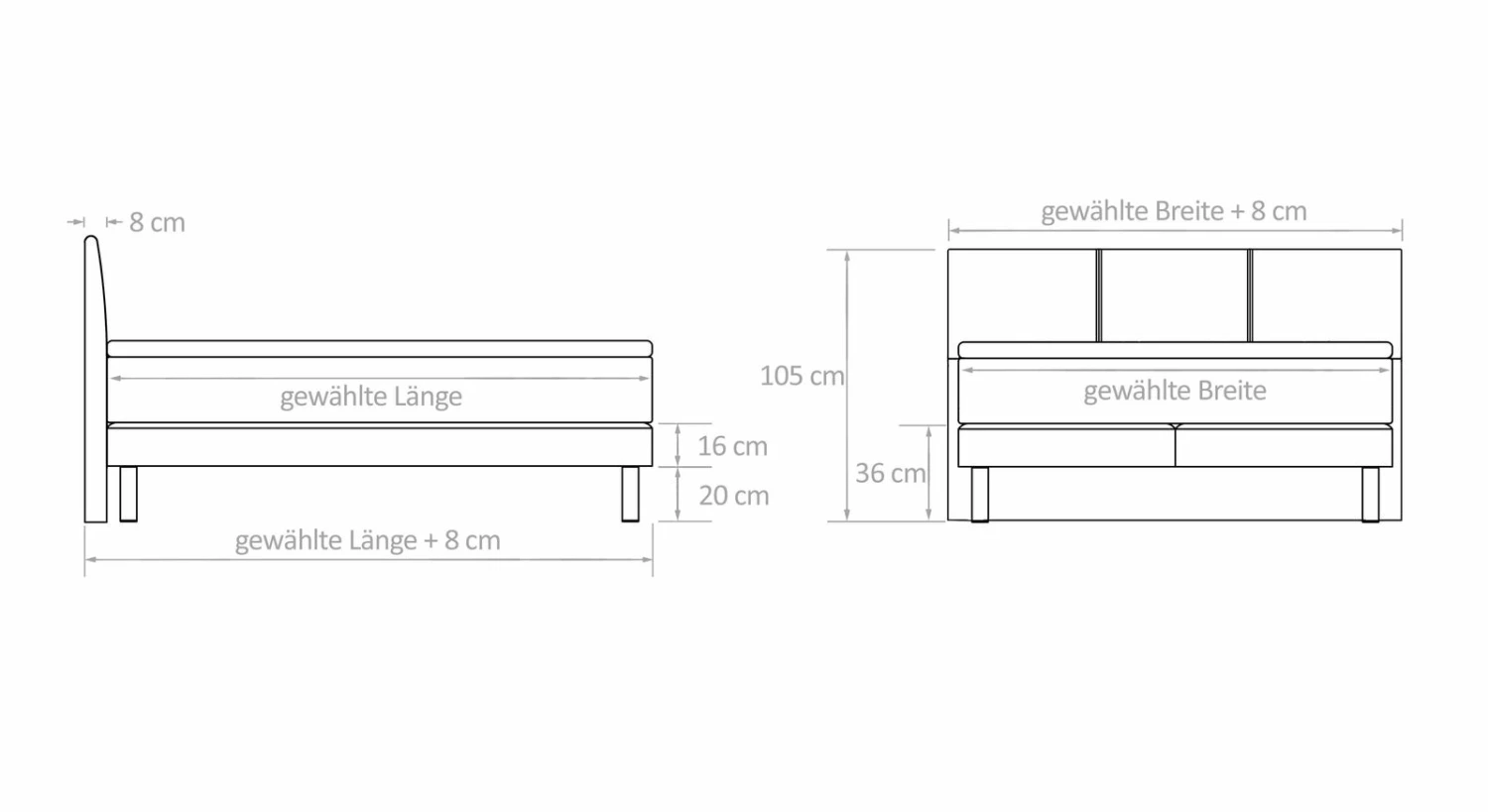 | Größe | 090/200cm, 100/200cm, 120/200cm, 140/200cm, 160/200cm, 180/200cm, 200/200cm, 090/210cm, 100/210cm, 120/210cm, 140/210cm, 160/210cm, 180/210cm, 200/210cm, 090/220cm, 100/220cm, 120/220cm, 140/220cm, 160/220cm, 180/220cm, 200/220cm |