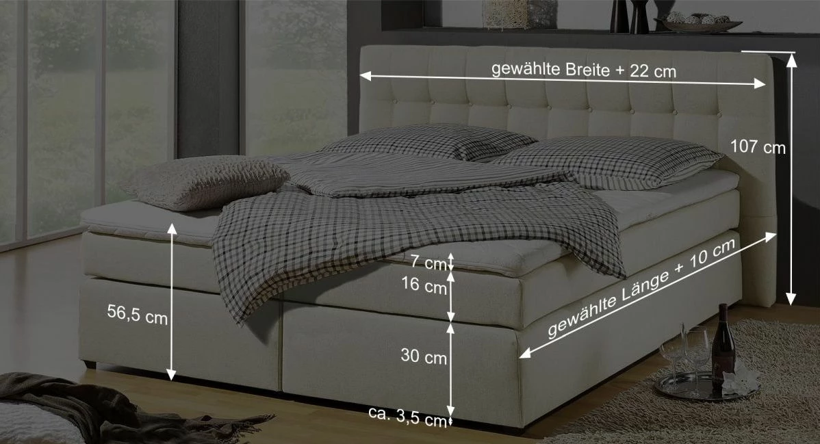 Die Schlafstätte „Chicago“ bieten wir in den gängigsten Größen an, so können die Produktions- und Lagerkosten niedrig gehalten werden und Sie erhalten dieses Boxspringbett zu einem einmalig günstigen Preis.